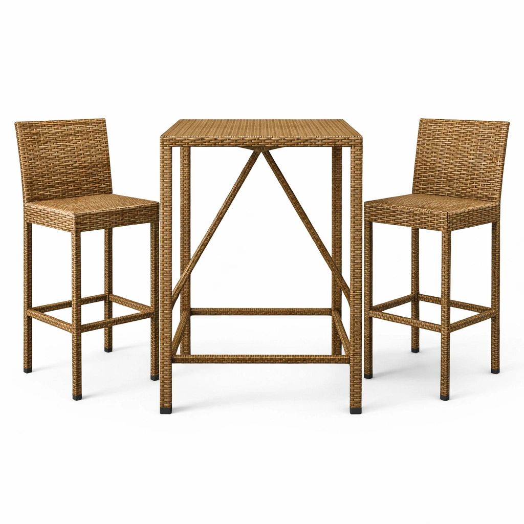 Ensemble de bar en rotin synthétique avec structure en acier marron