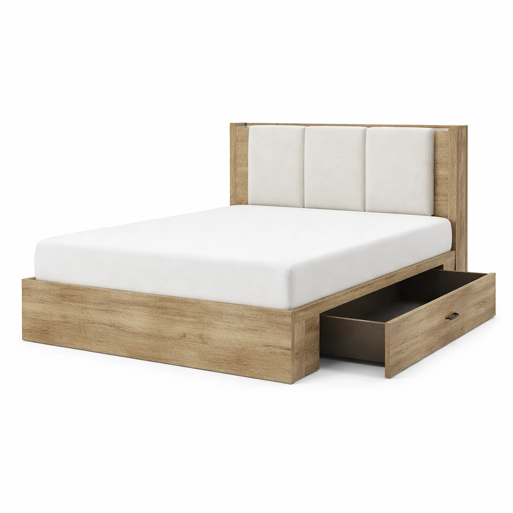 Lit avec rangement double en bois avec tête de lit rembourrée et tiroirs