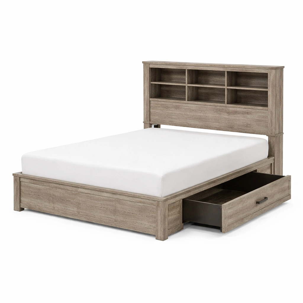 Lit avec rangement double en bois avec tiroirs et étagère chêne gris 200x160 cm