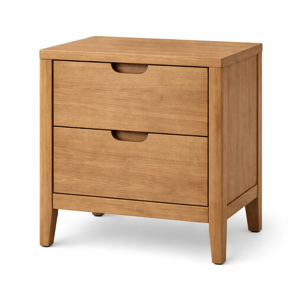 Table de chevet en bois beige avec deux tiroirs