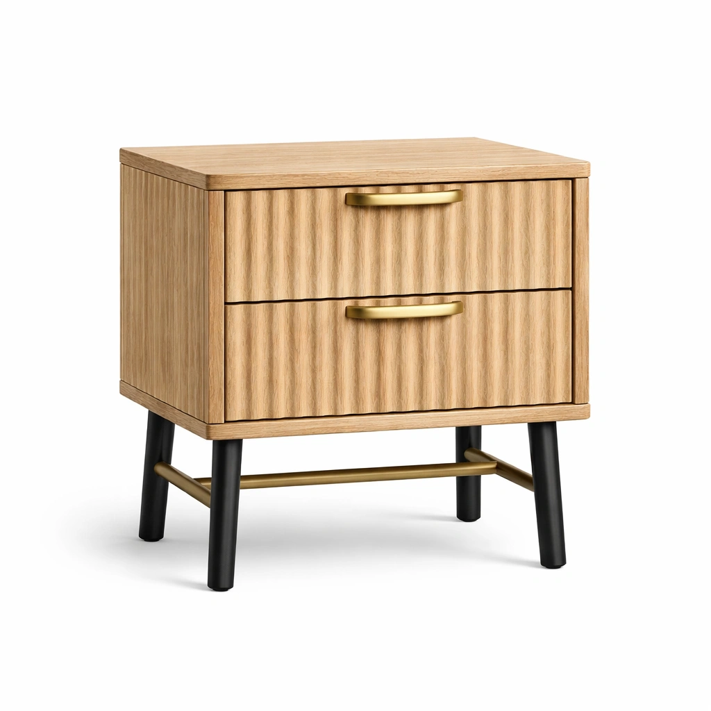 Table de chevet en bois chêne clair avec 2 tiroirs
