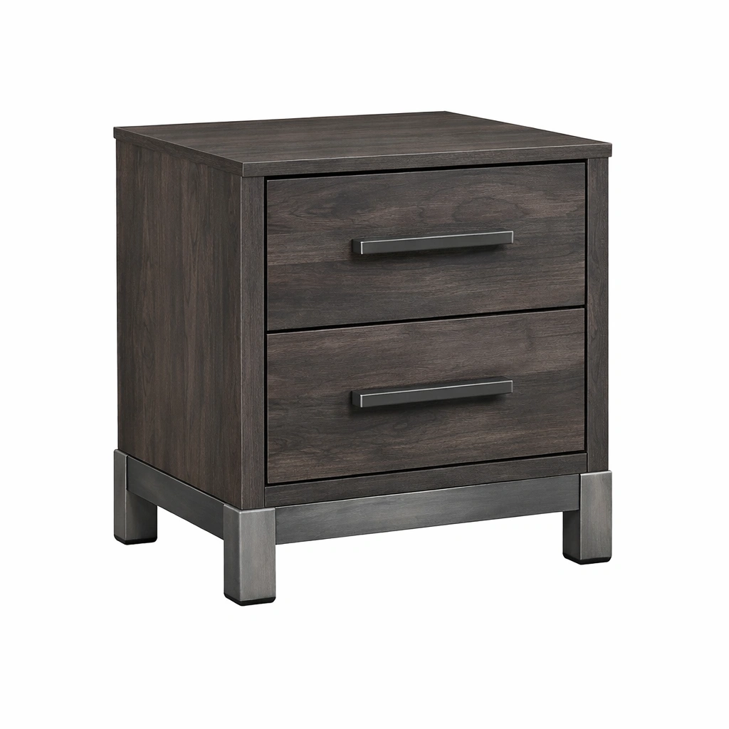 Table de chevet en bois et métal avec 2 tiroirs gris