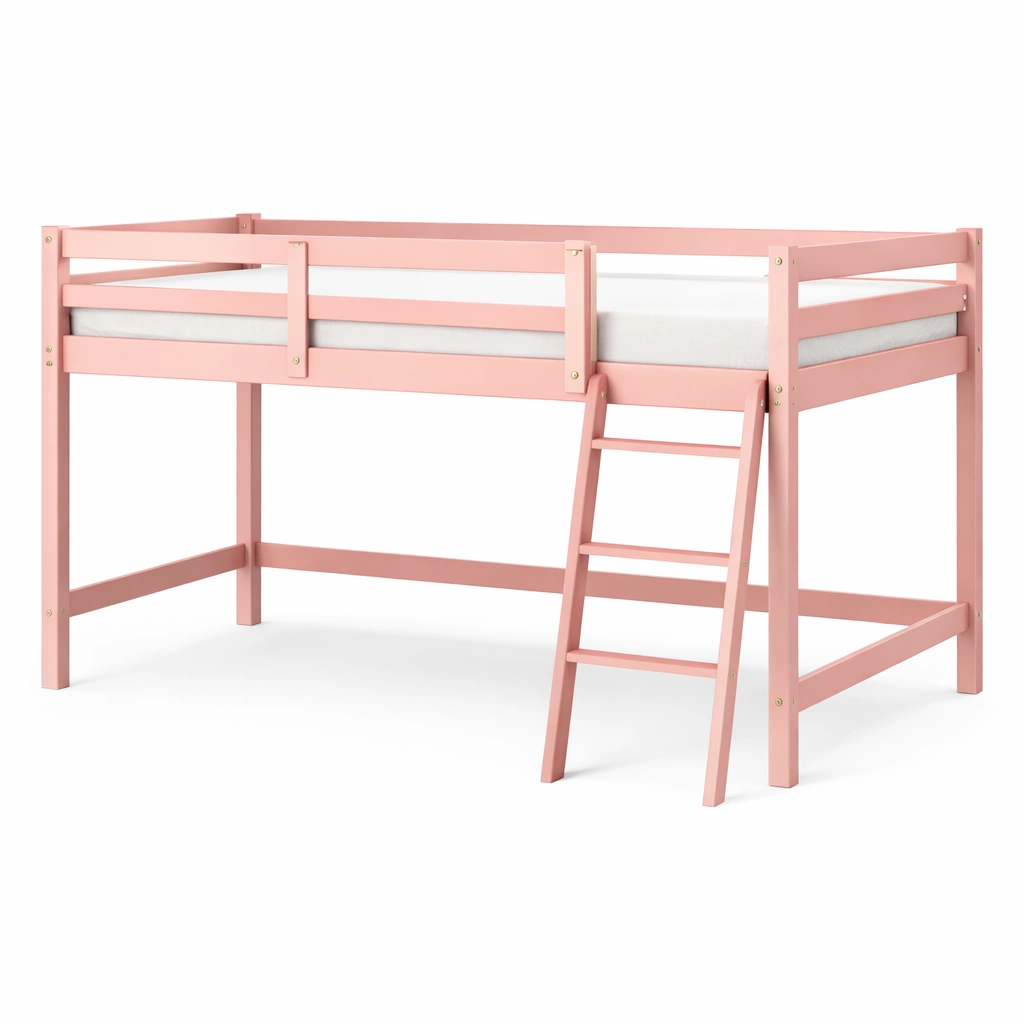 Lit mezzanine en bois de pin massif avec échelle intégrée.