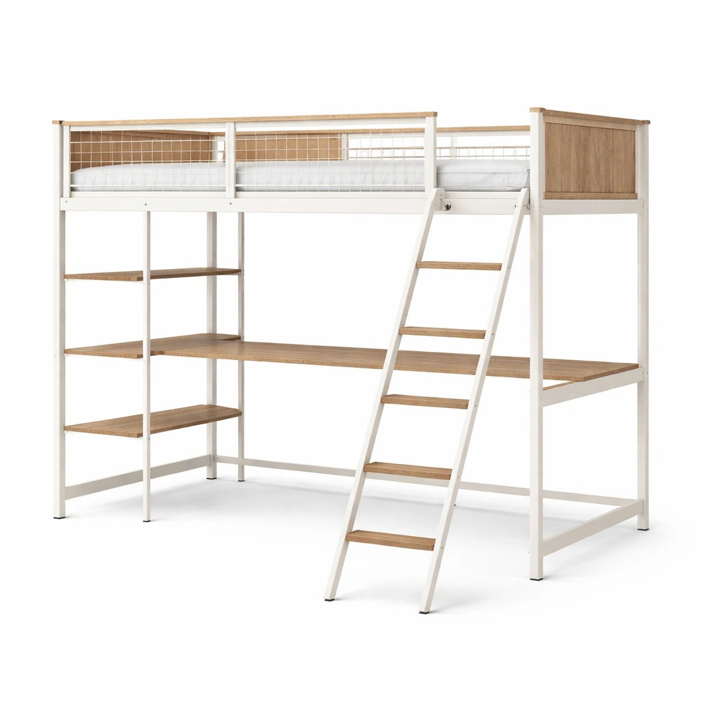 Composants inclus : Cadre de lit, échelle, étagères intégrées.