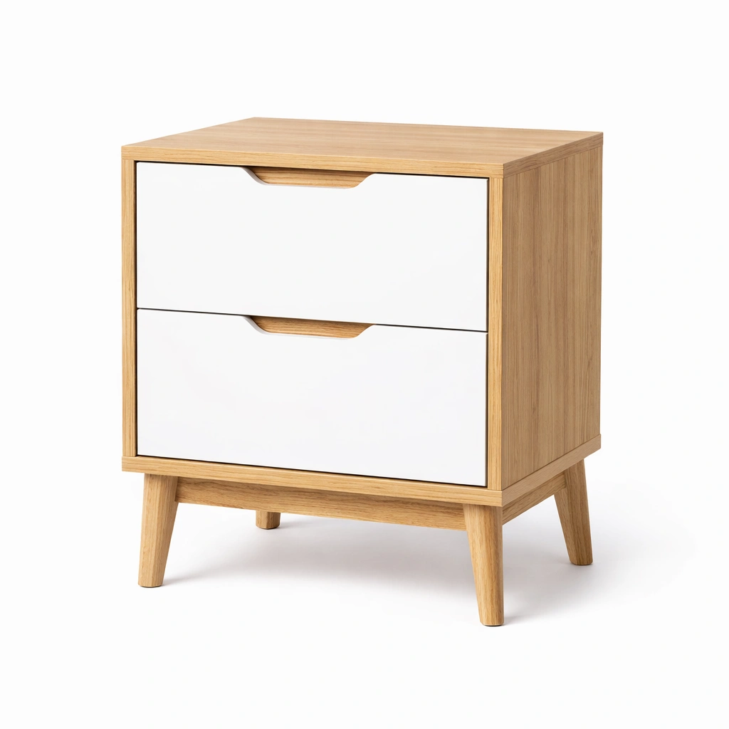 Table de chevet en bois et MDF avec tiroirs blanc naturel